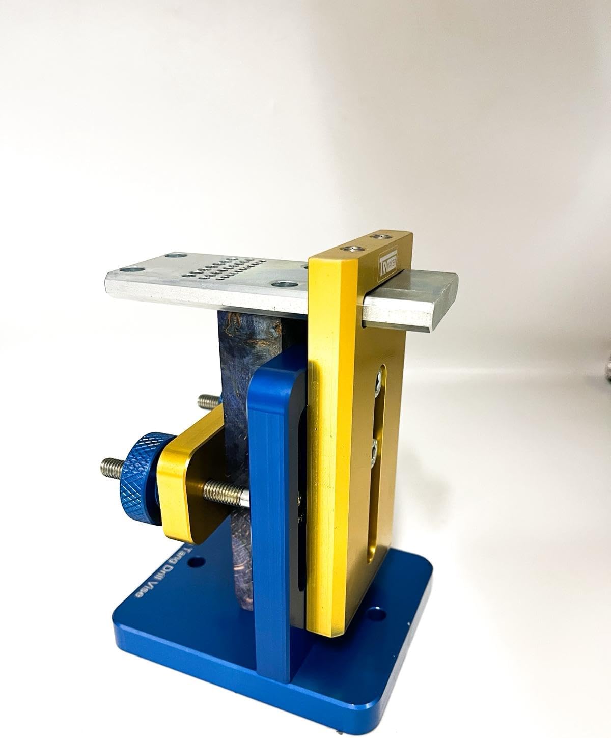 If you want to attach your woods proportionally and tightly, this special vice designed to drill 90-degree vertical holes perfectly will make your life much easier. Easily place your wood and easily tighten it with two clamping arms. Center your hole center to the desired size and drill without any problems. Product features The product is processed from aluminum material with quality workmanship on CNC machines. The hole liner is made of special steel suitable for the wood material. It allows height and width adjustments for different sizes of wood blocks. This product has been manufactured and is currently in the anodized coating phase. It will be sent to you in a combination of blue and yellow colors. The manufacturing process of the steel jig part continues It is representative in the photo. The holes on the steel jig are arranged in a row, 3-4-5 mm. By drilling the holes sequentially and then shifting the wooden block just 2 mm to the left or right, all the holes will pop together, creating a complete channel.