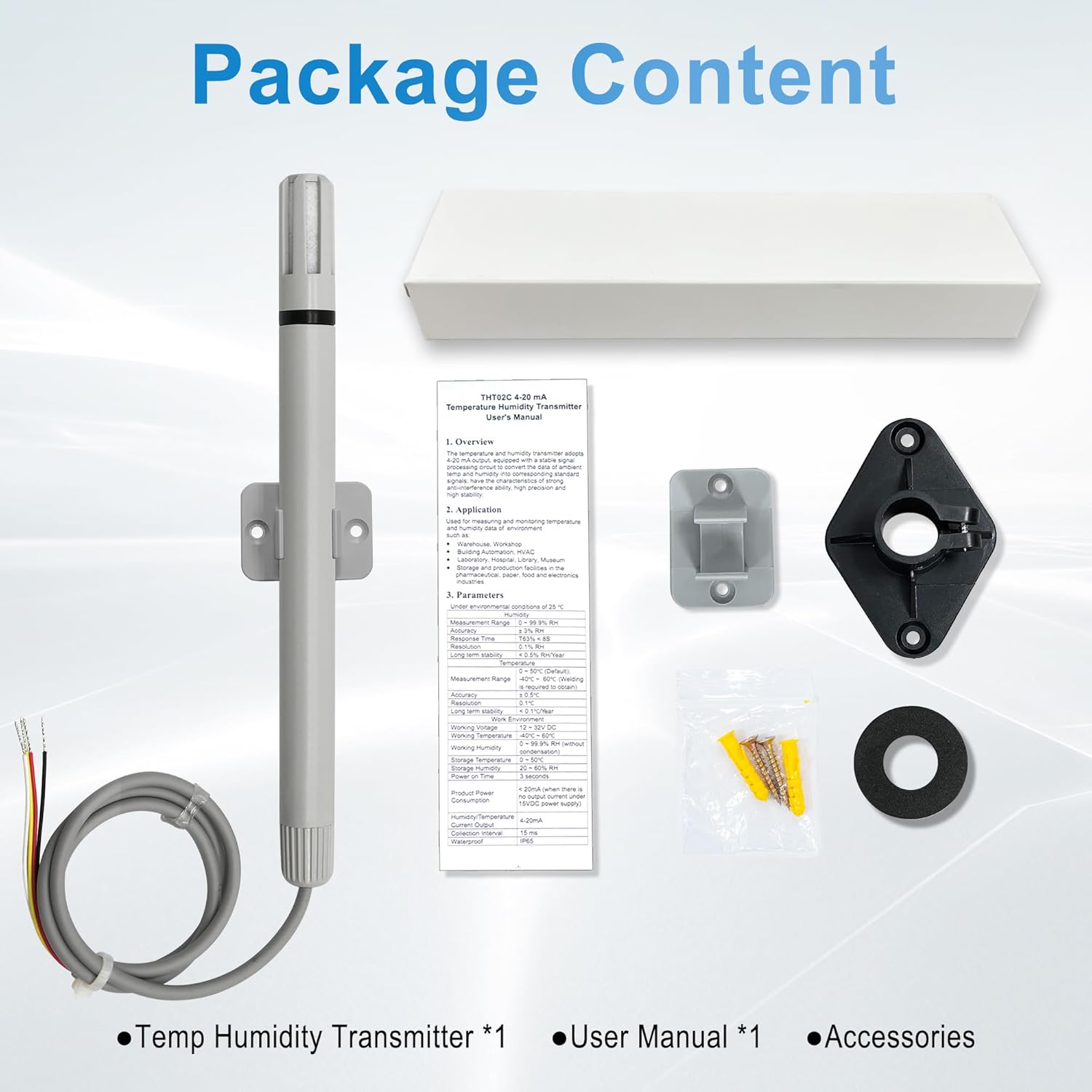 | Included Components | Temp Humidity Transmitter*1, Manual*1, Accessories |