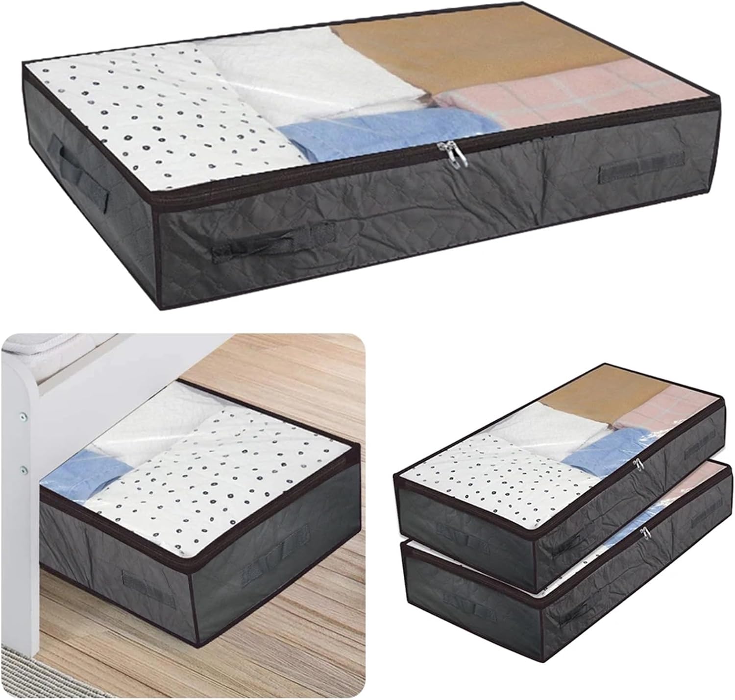 Specifications:Type:Underbed Storage BagMaterial: Non-woven FabricColour: Dark GreyShape: RectangularFeatures: ZipperItem Height: 17cmItem Length: 100cmItem Width: 50cmNotes:Please allow 1-3cm differs due to manual measurement.Due to the different display and different light, the picture may not show the actual color of the item. Thanks for your understanding.Package Included:2 pcs Under Bed Storage Bags