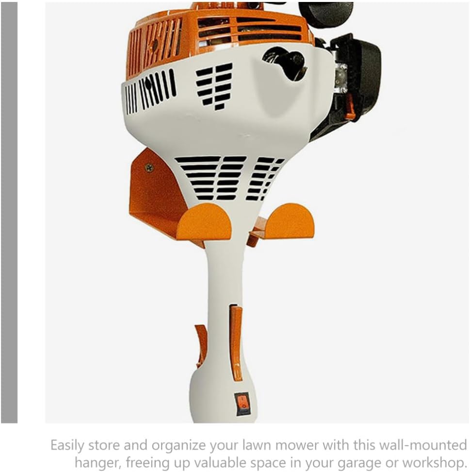 DescriptionFeatures-Color:Orange-Material:Metal-Size:23X12.7X7.2cm/9.04X4.99X2.83inPackage Including2 x Lawn Mower Hangers6 x Screw6 x Expansion Tubes