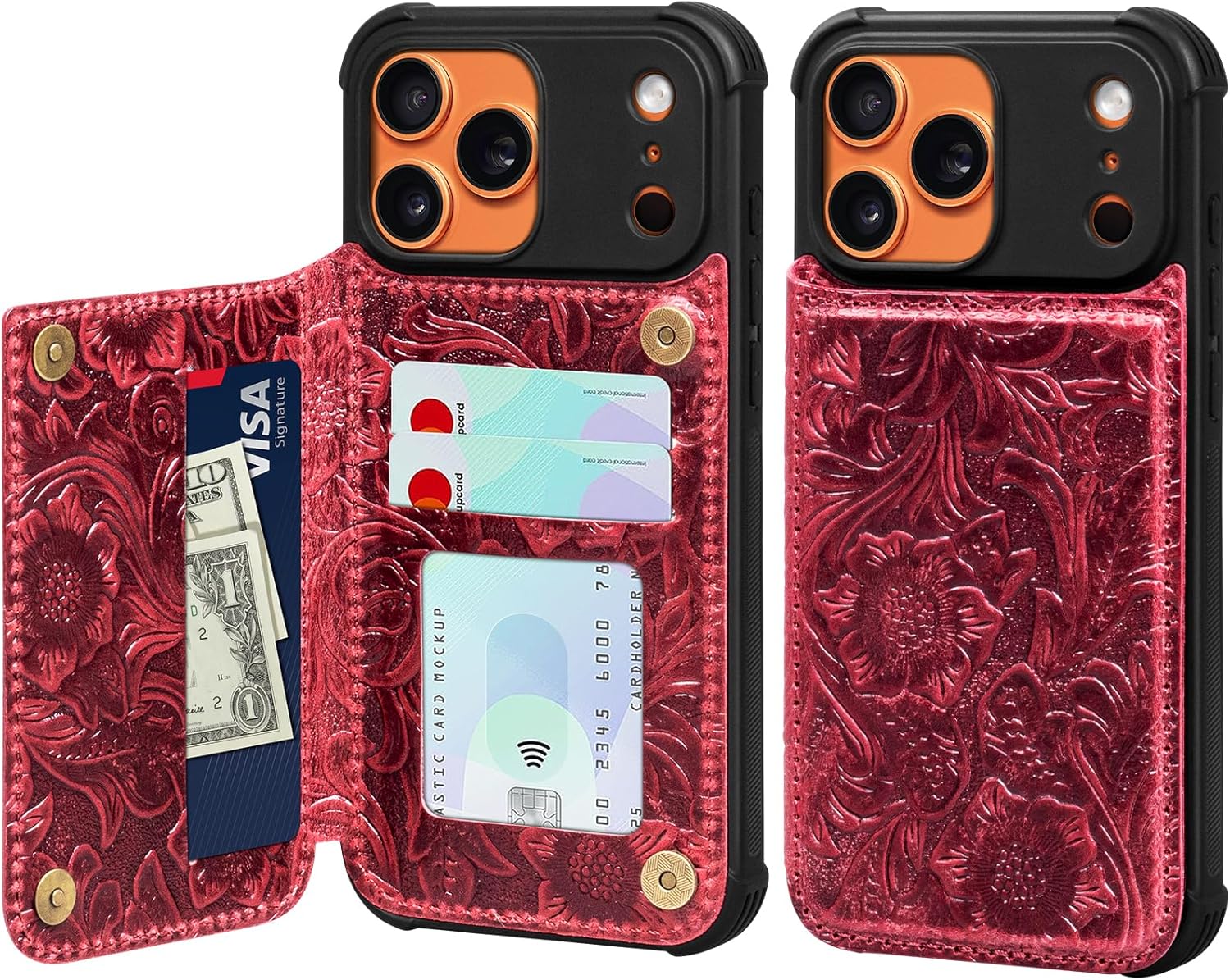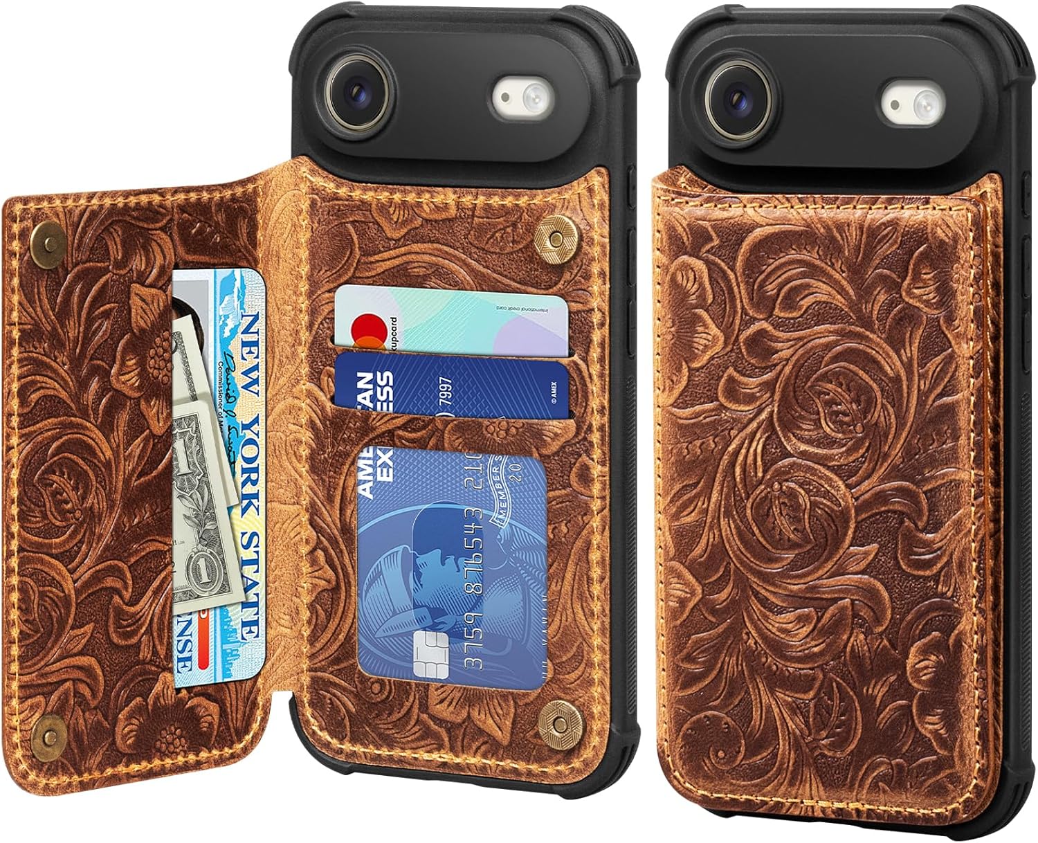 The cowhide is embossed with Tang grass patterns, giving it a firm touch, a strong texture and a classical and beautiful appearance. It is not soft. The four corners of the phone case are equipped with airbag anti-collision designs, which can provide effective protection when the phone drops or colliding. Regarding the card slot, when the new product comes out, it will be a little tight when inserting a card for use. However, as time goes by, it will become increasingly easy.