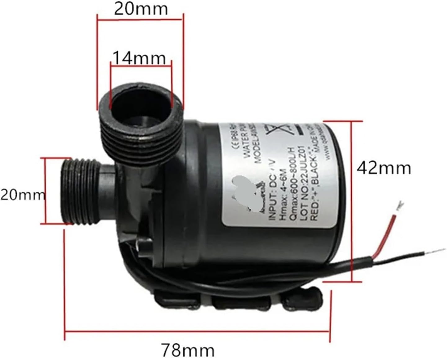 Pumpsfeature:Long working life, continuous power-on working time up to 10000-20000 hours.It runs smoothly, efficiently and with good performance.Small size, low noise, safe and environmentally friendly.Specification:It runs smoothly, efficiently and with good performance.Name: Water PumpMaterial: ABSVoltage: DC12V DC24VPower: 19WRated current: 920MAFlow rate: 800L/hMaximum water lift: 5 metersWorking environment temperature: 0-60<; 35db (water)Driving mode: electromagneticTransport medium: hot water pumpSize: Approx. 8 cm (L) x 7.7 cm (W) x 4.9 cm (H)Package Includes:1 x Mini brushless motor water pump