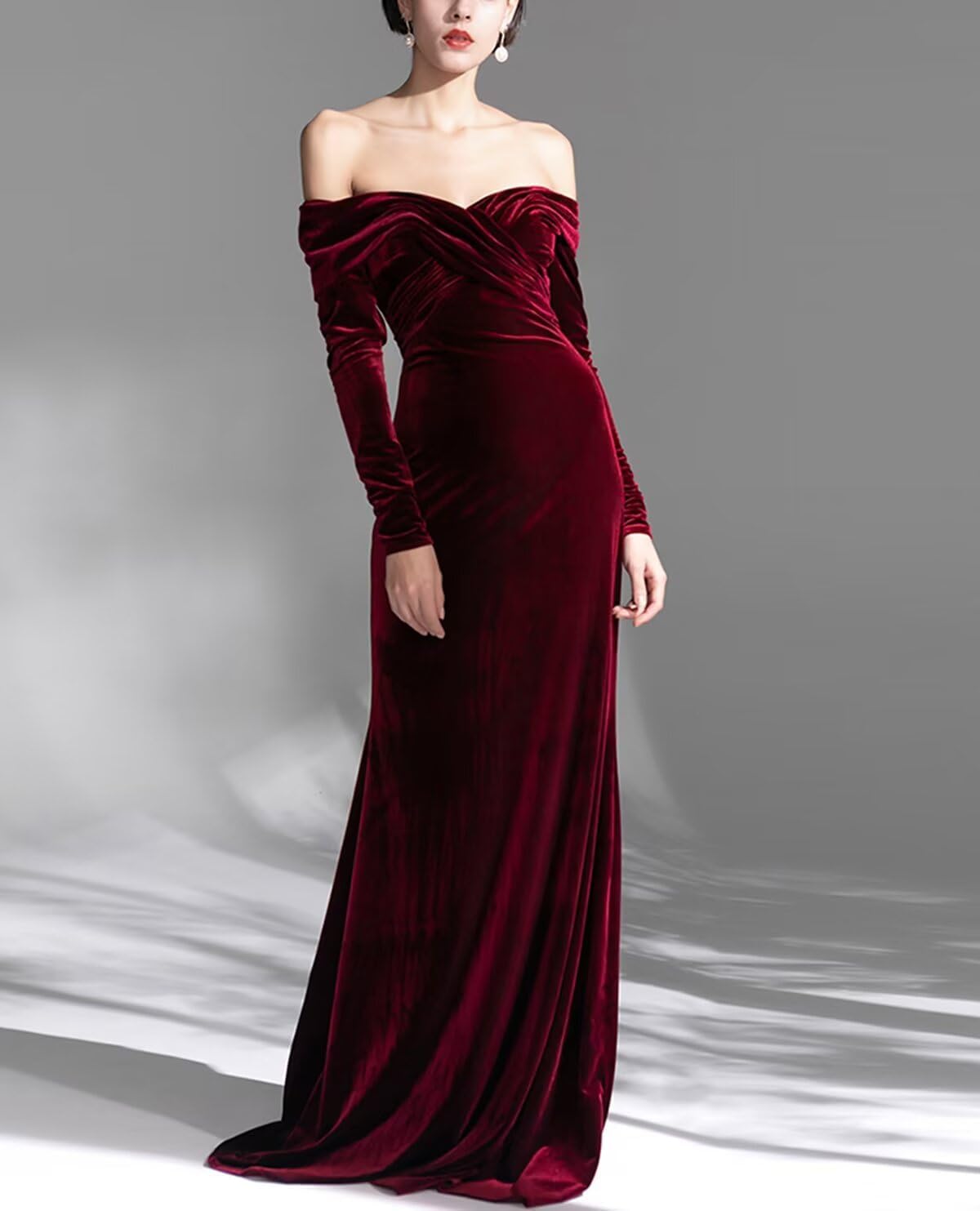 Welcome To WDBFY We focus on Formal Dresses and Wedding Dresses for Many years.we will continue to provide better price and quality products for our customers. Gender:Womens,Teens/Teenager girls Fabric:Soft Velvet Built-in Bra:Yes Neckline:Off the Shoulder Length:Floor Length Back Design:Zipper Size Type(Our Brand): US Size 0-26w Features:Pleated, Long Sleeves;100% Hand Made Measurements: 1.Bust _____inches 2.Waist _____inches 3.Hips _____inches 4.Shoulder to Floor(without shoes) _____inches 5.Height(without shoes) _____inches 6.Height of heels : _____inches 7.Biceps : _____inches 8.Sleeve length : _____inches 9.Around wrist: _____inches 10.Around Armpit: _____inches Note: 1. The real color of the item may be slightly different from the pictures shown on website due to camera quality and monitor settings. Photos are taken in natural light with no flash. 2. Please allow slight deviation for the measurement data. Washing care: 1.Machine wash or hand wash cold water,hand wash recommended 2.Do not bleach 3.Hang to dry