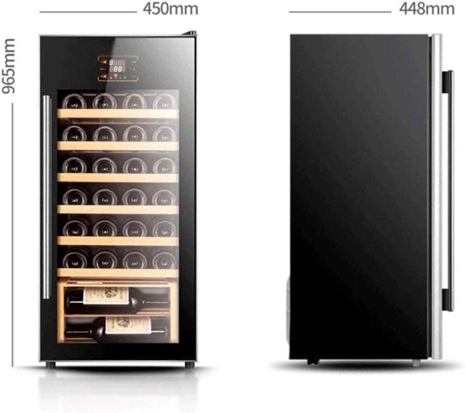 If you want your wine to have a good taste, if you are a wine connoisseur and need a way to keep your favorite tastes at your fingertips, then this compressor wine cooler is what you need. Designed for new and advanced collectors alike, this wine cooler chills your best options to an ideal temperature. With lots of amenities and a handsome design, this unit is a great choice! Here, combines style and practicality to present a wine cooler that accentuates any setting. Features: 8-18 C constant temperature cooling, precise temperature range control Touch intelligent temperature control and digital temperature display Choose natural solid wood wine rack, moistureproof and durable Double-layer brown tempered glass to isolate heat and prevent ultraviolet rays Built-in LED cold light source, does not affect the quality of the wine, does not conduct heat Stylish appearance and compact size, this wine refrigerator is ideal for living rooms, hotels, apartments and offices. Ideal for red/white wine, medicines, tea, and beverage coolers. Specification: * Power: 70W * Product size: 450 * 448 * 965 mm (17.7 * 17.6 * 38 in) * Capacity: 110L/32 bottles (based on actual capacity) * Temperature zone: 8-18 C (46-64 F) * Refrigerant: Environmental R600a * Voltage:110- 240V/50Hz Note:This product only sells wine cabinets and does not include other products.
