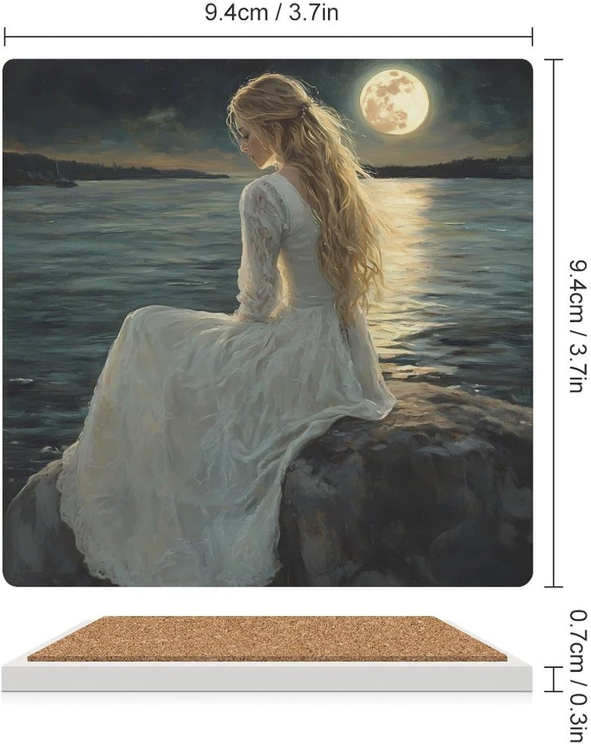 coasters,coasters set of 4,coasters set of 6,cute coasters with Funny Pattern Printed Ceramic Coasters with Cork Base Cup Holder Absorbent for Drinks Coasters Square Tabletop Protection Mat Decorative Cute Coffee Cup Beverage Coasters