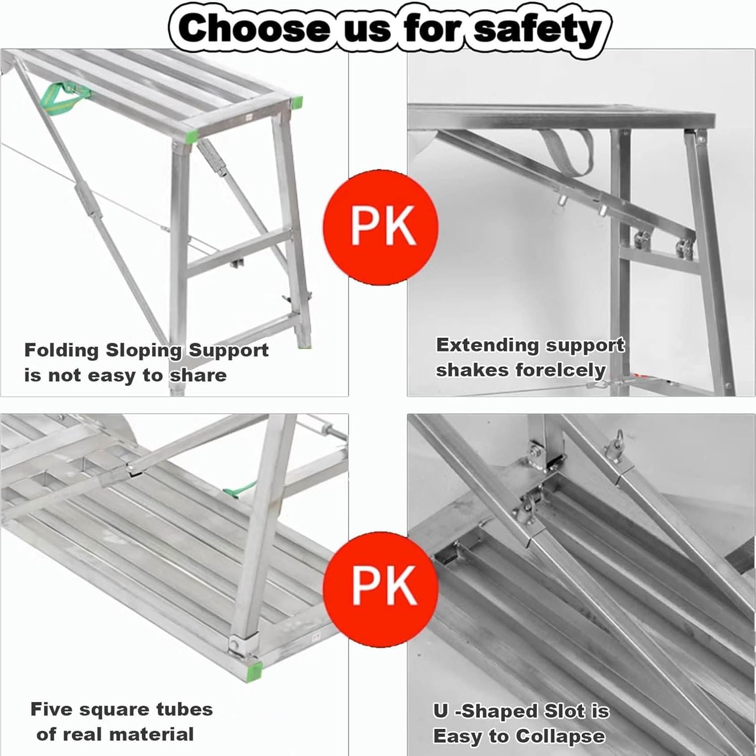 Scaffold Ladder Scaffolding, Portable Folding Scaffolding, Multipurpose Work Platform Scaffold Tower Ladder Stool Work Ben, 800 Lbs Load- Our scaffolding is a versatile tool for daily use, with a foldable design that makes it easy to carry and store.- No assembly is required, making it easy to set up and use right away.- Anti-slip pedals ensure your safety even in wet conditions.- Lockable legs and non-slip feet provide added stability and safety.- The work platform is made of thick galvanized steel and can support up to 880 pounds thanks to its double pole support.Specifications:Name: Adjustable working platform ladderColor: SilverMaterial: Galvanized steel pipeLoad capacity: 400kgProduct use: Home decoration, DIY, lifting objects, wall painting, general maintenance workProduct sizes available:- 140cm x 40cm x 70~110cm- 160cm x 40cm x 80~120cm- 180cm x 40cm x 90~145cm- 200cm x 40cm x 100~160cmPackage includes: 1x folding scaffoldingCustomer service:- Please note: As the is welded from galvanized steel, there may be visible welding marks. If this is a concern, please do not place an order.