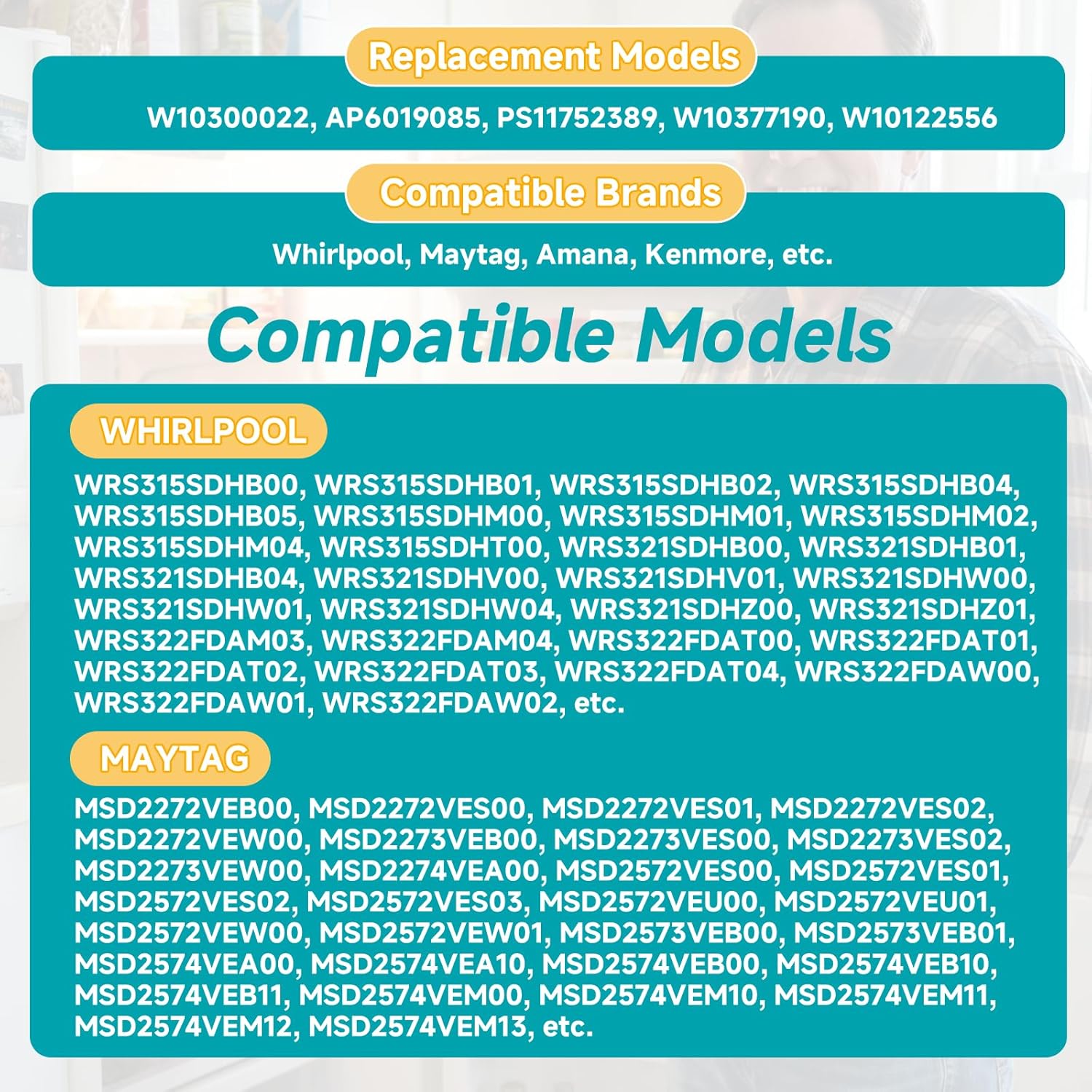 | Included Components | 1* WPW10300022 Refrigerator Ice Maker |