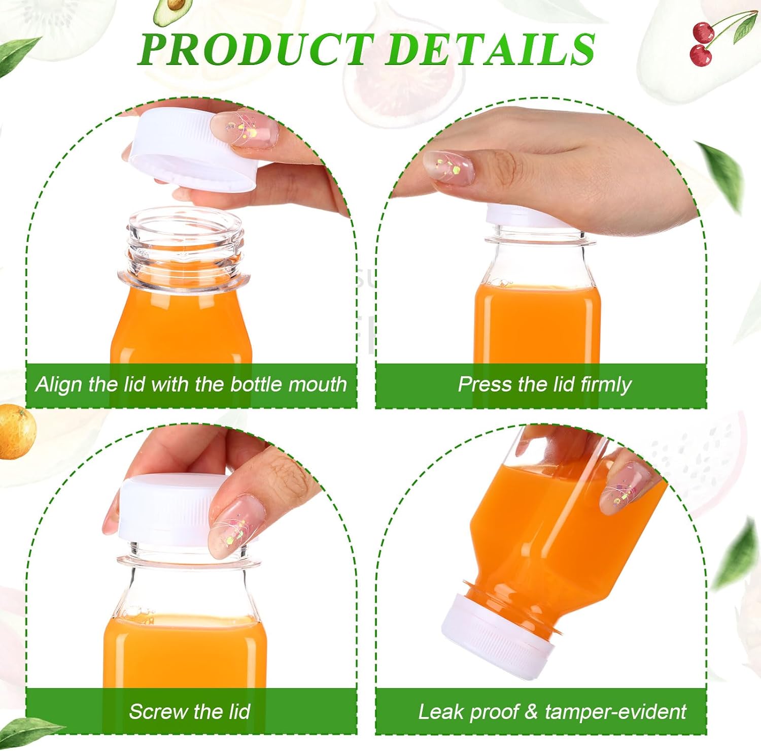 Features: Quality material: These 4 oz plastic drink containers are made of thick plastic material, sturdy and drop resistant, will not break easily and can be applied for a long time. These reusable mini water bottles can not withstand high temperatures, so be careful not to use them to hold hot water, and they can not be put in the dishwasher. High tightness: These little juice containers have leakproof lids for better sealing, so you do not have to worry about spilling liquids during exercise, walking, and car driving. They are very suitable for outdoor activities such as travel, picnics, and shopping. Ease to use: These mini water bottles containers can be applied for once, thrown away after use, saving your time and effort, or you can wash them for a long time using. Wide mouth design: These bulk mini juice bottles feature a wide mouth design, making it easier to dispense beverages. Specifications: Material: PET plasticColor: clear, whiteSize: about 1.8 x 3.7 inches (diameter by height)Mouth diameter: about 1.5 inchesCapacity: about 4 ozPackage includes: 200 x Square plastic juice bottles with lidsNotes: Manual measurement, please allow slight errors on size. The color may exist a slight difference due to different screen displays.