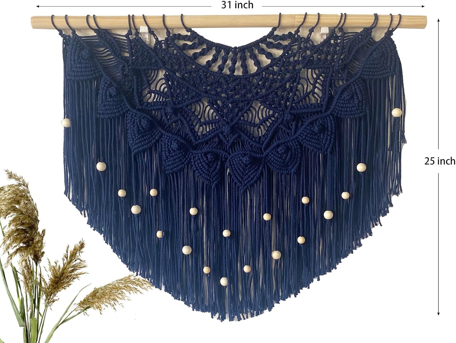 This Boho style art tapestry will give your home an atmosphere of art, which you can use as a curtain or carpet. In a word, this is a product that can improve your quality of life. Get it quickly. It will bring you a surprise. Product details : Style: Large Macrame Wall Hanging Material: cotton cord Color: Beige,Grey,Orange,Light Green.Pink,Purple,Khaki,Navy. Total Size: 31W" X 25H" Package Includes: 1 x Large Macrame wall hanging. 2 pieces of plastic nails . some extra little gift .